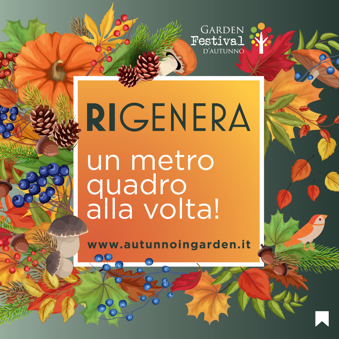 L’edizione 2023, l’ottava, del Garden Festival d’Autunno – promosso da AICG Associazione Italiana Centri Giardinaggio nei più di ottanta Garden Center aderenti di tutta Italia – quest’anno intende far riflettere sul significato di rigenerare: un invito all’azione, abbinato a una unità di misura piccola e precisa - un metro quadro - da far rinascere poco alla volta con azioni semplici e realizzabili.