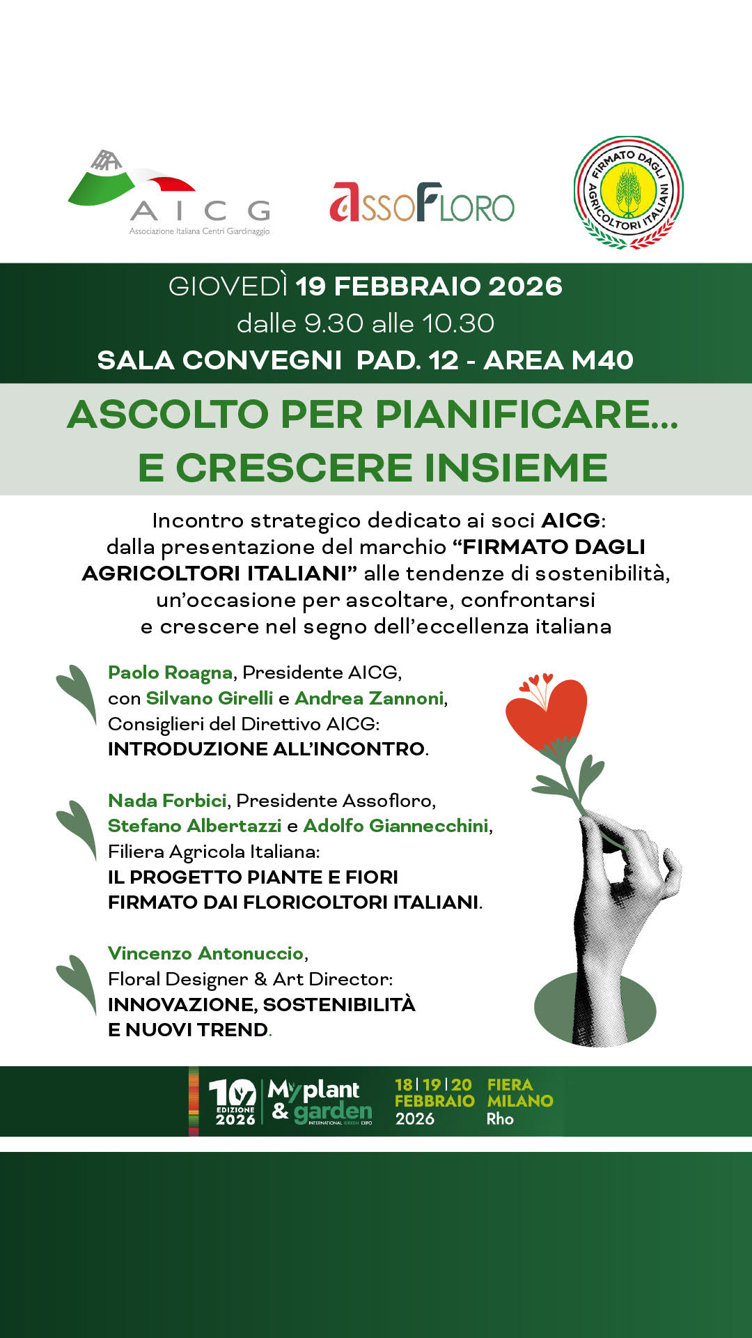 Giovedì 19 febbraio, dalle 9:30 alle 10:45, al Padiglione 12, Stand M40, di Myplant & Garden si terrà un incontro che sarà molto più di una semplice presentazione: sarà un'opportunità di ascolto attivo e condivisione strategica: