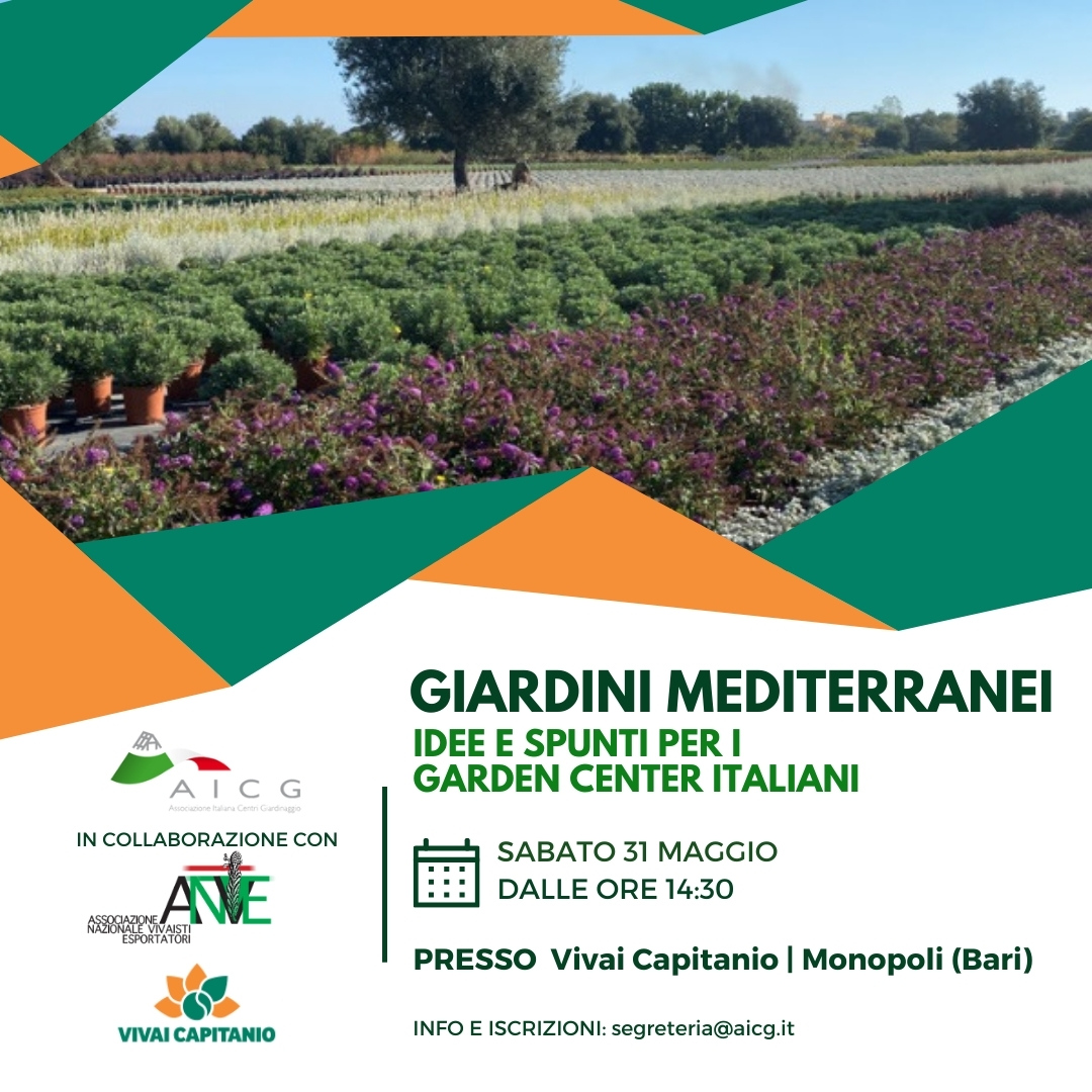 L'evento, organizzato da ANVE in collaborazione con Vivai Capitanio vede anche la partecipazione di AICG e prevede un MEETING TERRITORIALE AICG che si terrà a partire dalle 14.30 e che proporrà l'intervento "Giardini mediterranei senza confini: idee e spunti per i Garden Center italiani" con i nostri soci e consiglieri, Emanuele Simeoli (Plant Lover - Sime Garden) e Davide Michelini (Gardenista - Floricoltura Vivai Michelini).